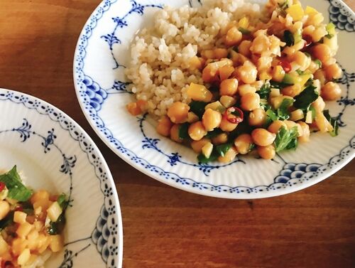 バジルの代わりに青 じそを使う「和風ガパオライス」。バジルはスーパーで入手できない時もあるのだが、 青 じそであればわりと簡単に手に入る。ニンニクの食欲を喚起する香りとひよ こ豆のホクホクした甘味、 タケノコのこりっとした食感、青 じその爽やか…