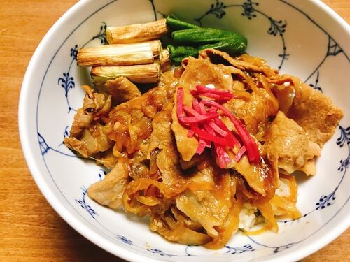お腹いっぱい満足度の高い「丼物」。肉と一緒にごはんをかき込むと、まずは脂身のコクがじゅわっと広がる豚肉のうま味と甘味がやってくる。次に玉ねぎがとろとろに煮詰まっていて甘い! 肉のコクと玉ねぎの甘さの濃い目のつゆがしみ込んだごはんも最後の一粒…