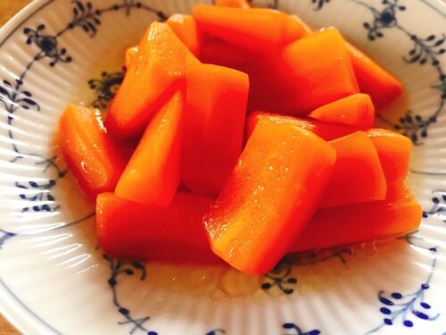 洋食の定番「にんじんのグラ ッ セ」(左)「若竹煮」はタケノコとダシをたくさん含んだワカメがおいしい(中央)「里芋のみそ煮」「ふろふき大根」はあっさり、淡泊な野菜の味をコクのある味噌が好相性である(右)にんじんや大根は面取りをして角の煮崩れ…
